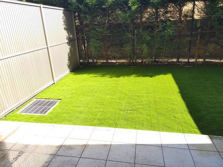 高品質な人工芝は、ぱっと見天然芝かと思うほど美しく自然になじんでいます。人工芝は、お手入れが簡単で、芝刈りや水まき、肥料などの手間がかからず、雑草や虫で悩まされることもないため、園芸や農業経験のない方でも安心です。