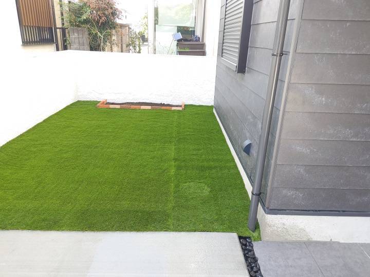 人工芝はDIYする人も少なくないですが、やはりプロが施工すると見た目もきれいでまるで天然芝のよう。 継ぎ目も自然で目立たない上、なめらかで色味も自然なので、まるで天然芝のような仕上がりに。 これなら暑い夏にはかかせない草むしりの心配も不要で、生活のQOLも上がります。