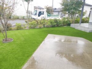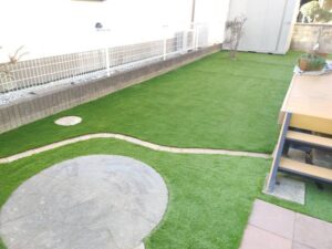 人工芝を施工すれば一年中お庭が綺麗な状態を保持でき、メンテナンスも楽です。天候で荒れる心配もございません。長い目でみたらコストパフォーマンスは抜群によいといえるでしょう。