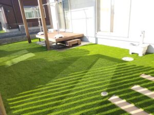 最近ではご家庭でも人工芝を取り入れる方が増えてきました。理由としては、初期費用だけでメンテナンス費用が基本的にかからないこと、季節問わずいつでもきれいな状態の緑を楽しむことができることなどが挙げられます。