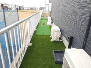 天然芝と見分けがつかないほどの人工芝であなたの自宅のバルコニーを彩りませんか。味気ないコンクリートのバルコニーが、人工芝を敷くことによりまたたく間に目に鮮やかなグリーンの空間となります。